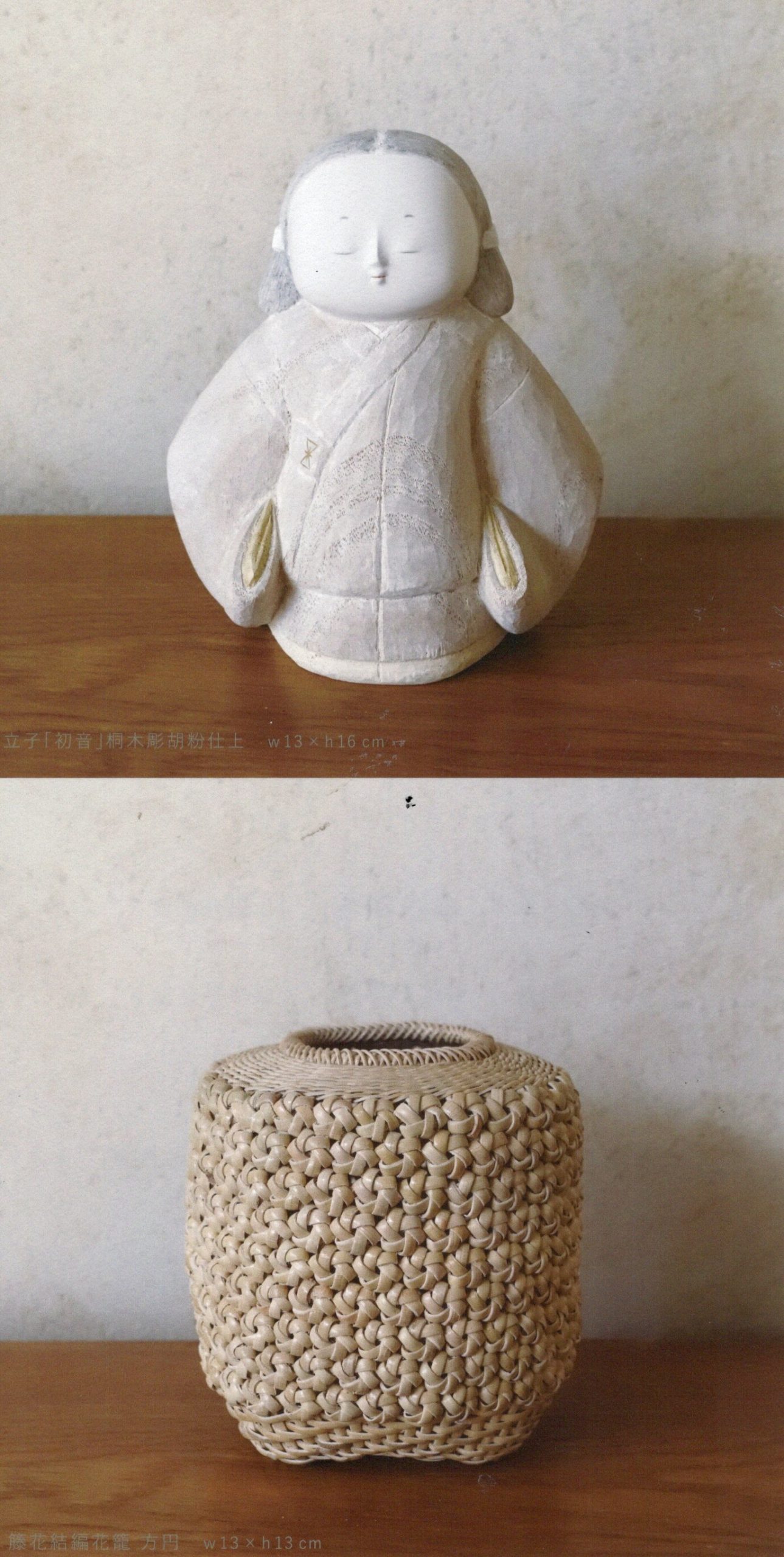 木彫人形 松谷清佳(出雲市在住) 籐籠 川口淳平(米子市在住) 心を描く素材は木・胡粉・籐 日本伝来の技ありて こころを宿したお二人の作品の秘められた美しさ 気高き清韻をお聞きくださいませ